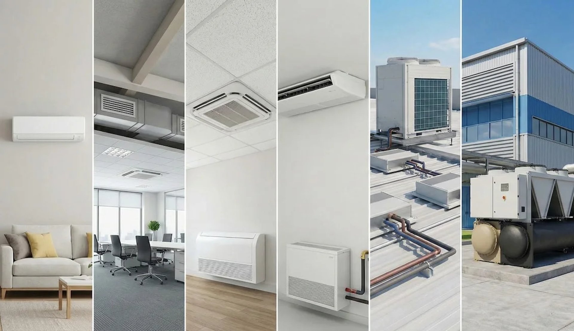 Instalación de Aire Acondicionado a nivel domestico, comercial e industrial. Le ofrecemos asesoramiento, proyecto y ejecución de cualquier tipo de sistema de Aire Acondicionado. Instalamos unidades de VRF o VRV, Unidades de Tratamiento de Aire (UTA), Aerotermia, Enfriadoras Chiller, Fan Coil, Split o Multi-Split, Conductos, Evaporativas y Cassette